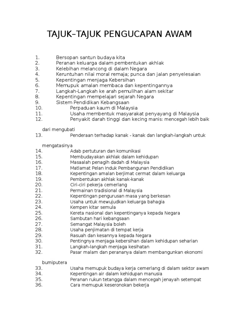 Pengucapan awam bertujuan untuk menyampaikan maklumat membimbing mengajar membantu menghibur dan sebagainya. CADANGAN TAJUK PENGUCAPAN AWAM. Pastikan mesej itu sampai dan penyampaiannya berkesan.