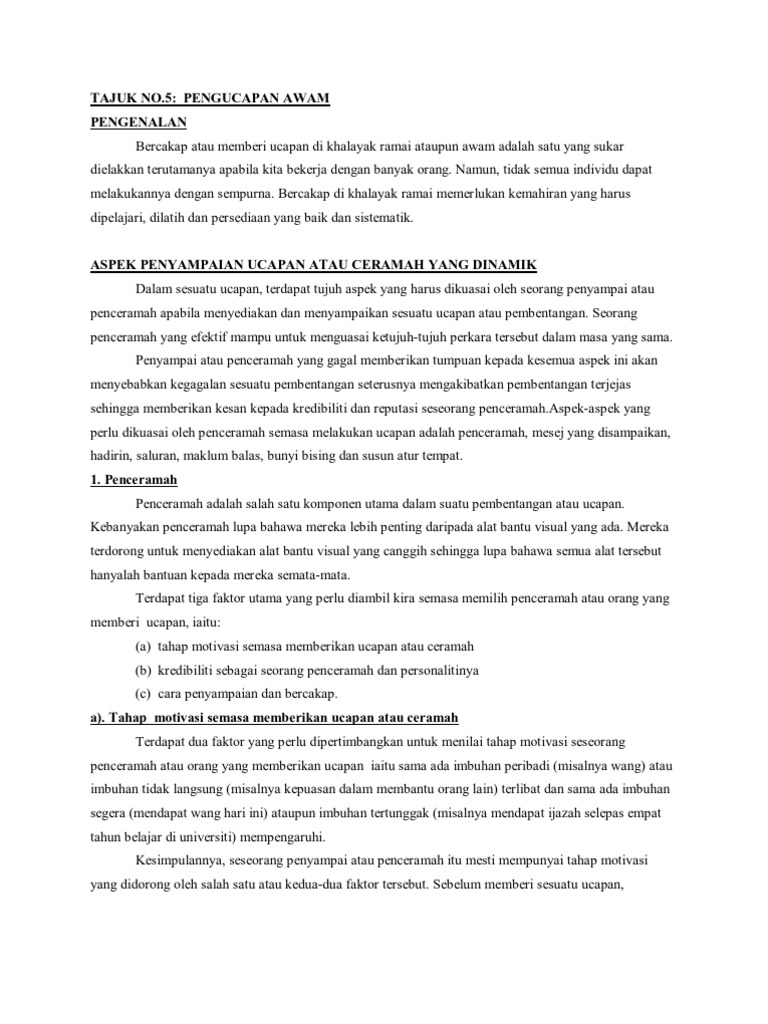 CARA PENYAMPAIAN UCAPAN. Check more flip ebooks related to PENGUCAPAN AWAM - KUMPULAN 10 of farhanimfadzilah01. ABSTRAK Penulisan ini memperkata mengenai perkara-perkara umum dalam penggunaan bahasa penentuan format pemilihan bahan seta tatacara penulisan dan penyampaian ceramah ucapan dan taklimat atau yang disebut perucapan yang merupakan.